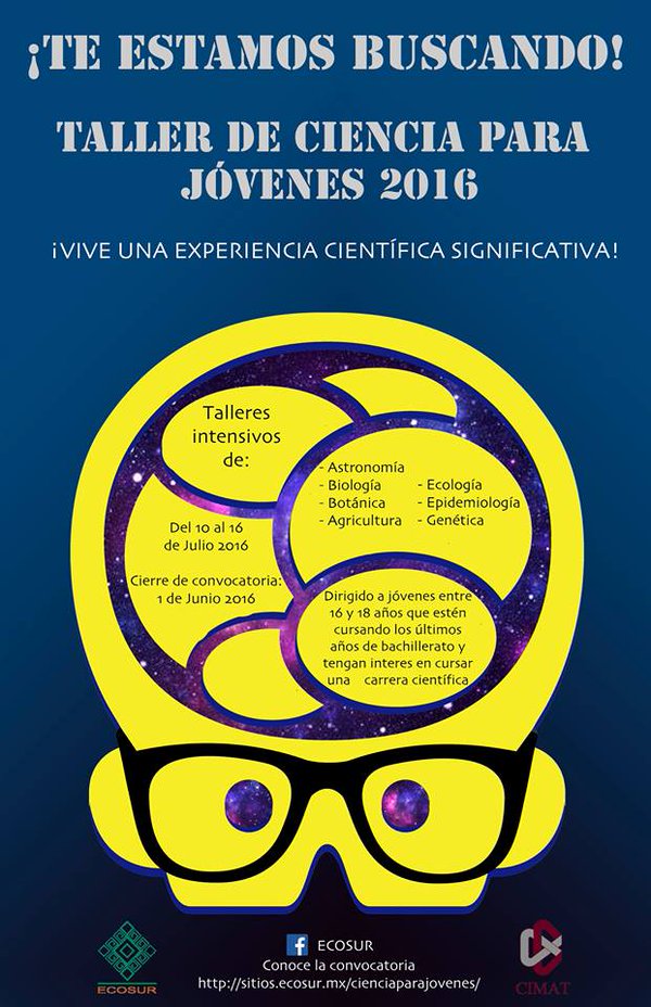 A jóvenes estudiantes de entre 16 y 18 años de edad, que cursan el nivel medio superior (Bachilleres/Preparatoria/CBTIS/otra modalidad) a participar en el XI Taller de Ciencia para Jóvenes 2016.